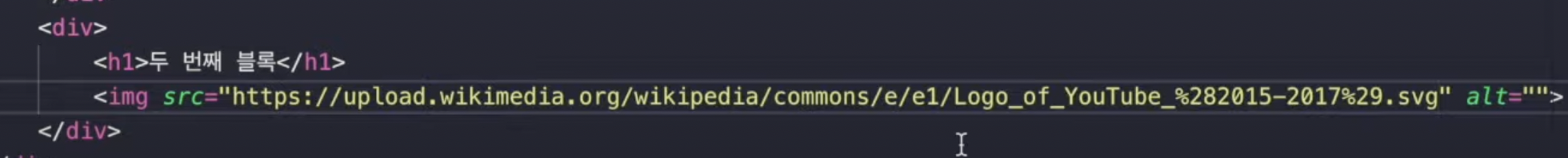 이미지를 불러온다. alt 속성은 이미지 불러오기를 실패했을때 원하는 텍스트로 대체해준다(""안에다가 적으면됨 )