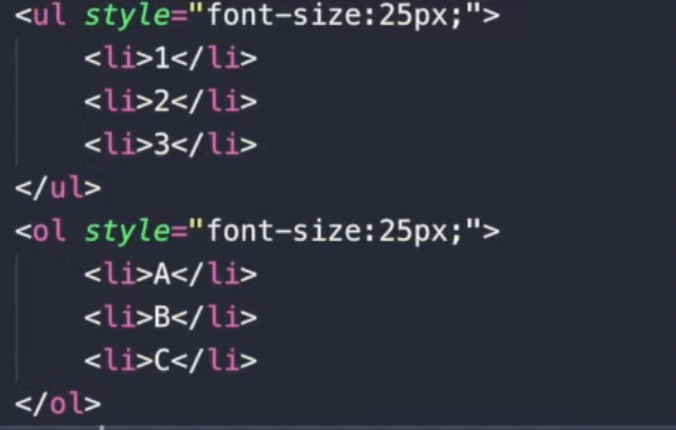 ol태그는 앞에 자동으로 1,2,3번 등 숫자리스트를 만들수있다.